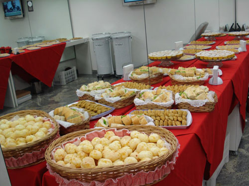 • Pães de queijo e mini croissants quentinhos